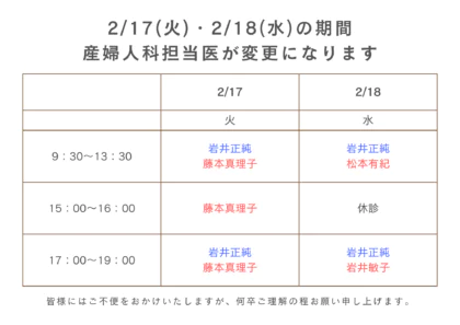 産婦人科よりお知らせ
